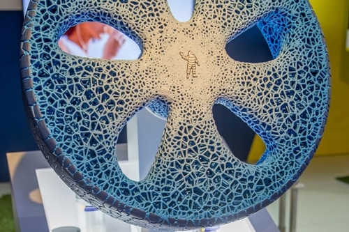 At the 2017 World Summit on Sustainable Mobility in 2017, Michelin released a concept, called 'Vision', for a 3D-printed tyre that is airless, puncture-free, connected, rechargeable and customisable.